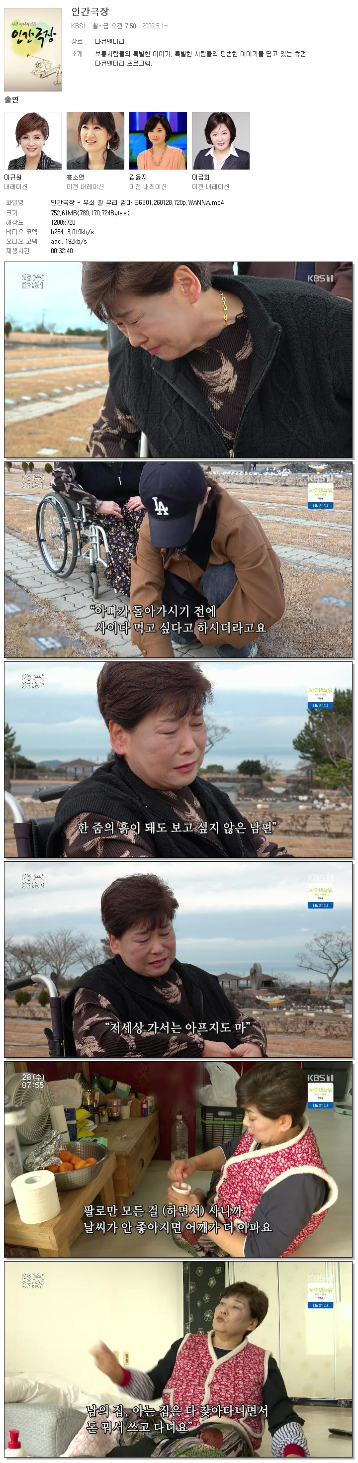 [KBS1] 인간극장 - 무쇠 팔 우리 엄마.E6301.260128.720p.WANNA.mp4