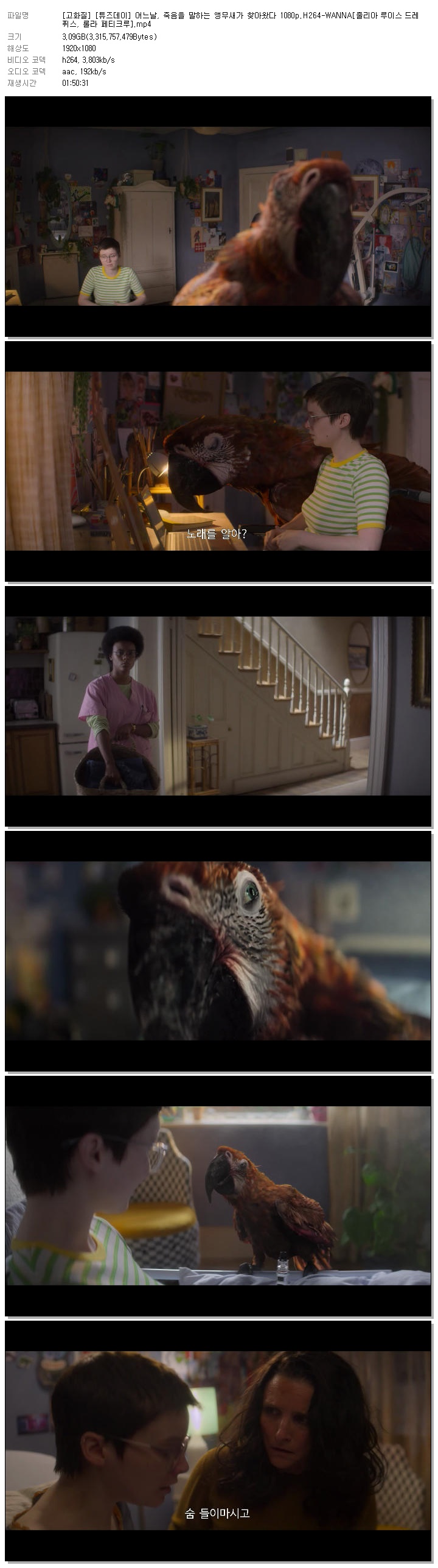 [고화질] [튜즈데이] 어느날, 죽음을 말하는 앵무새가 찾아왔다 1080p.H264-WANNA[줄리아 루이스 드레퓌스, 롤라 페티크루].mp4