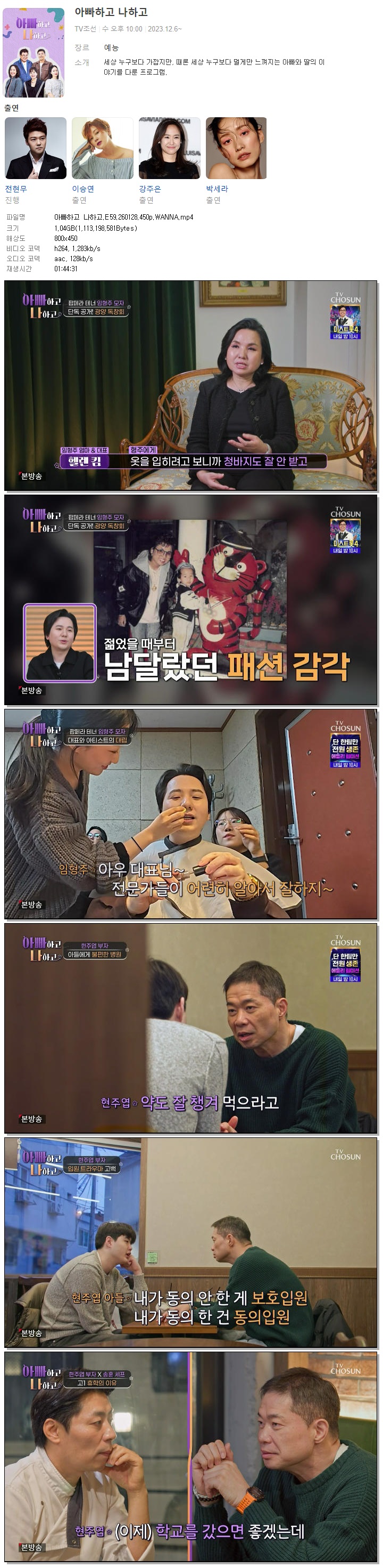 [TV조선] 아빠하고 나하고.E59.260128.450p.WANNA[현주엽, 임형주]