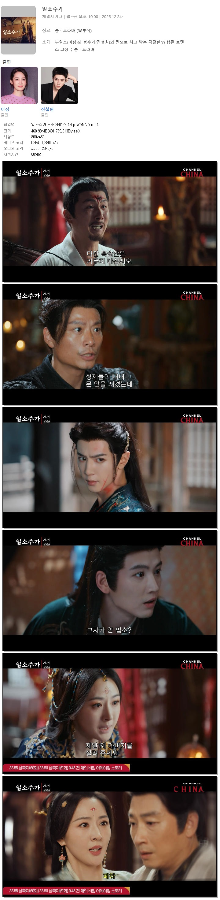 [채널차이나] 일소수가.E26.260128.450p.WANNA[이심, 진철원]