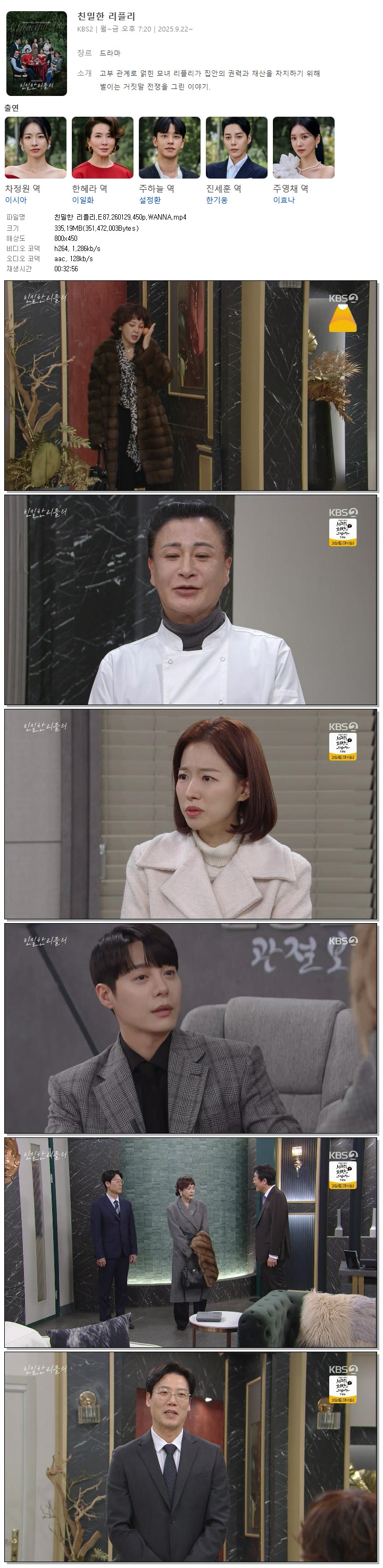 [KBS2] 친밀한 리플리.E87.260129.450p.WANNA[이시아, 이일화].mp4