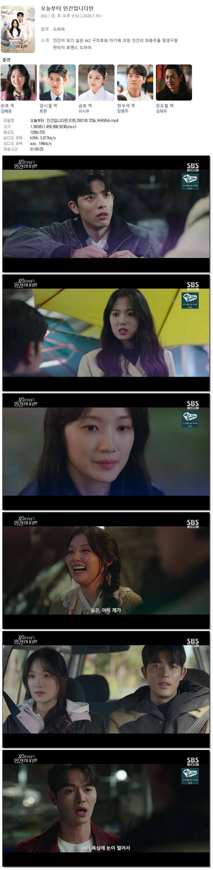[SBS] 오늘부터 인간입니다만.E05.260130.720p.WANNA[김혜윤, 로몬].mp4