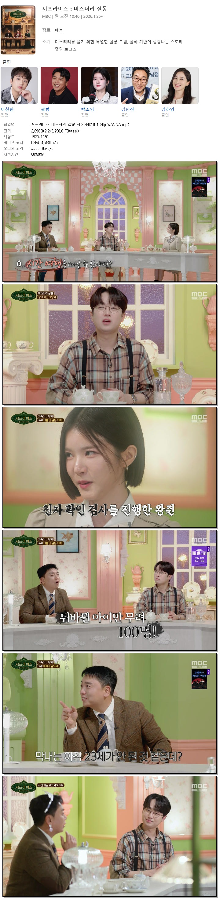 [MBC] 서프라이즈 미스터리 살롱.E02.260201.1080p.WANNA[이찬원, 곽범].mp4