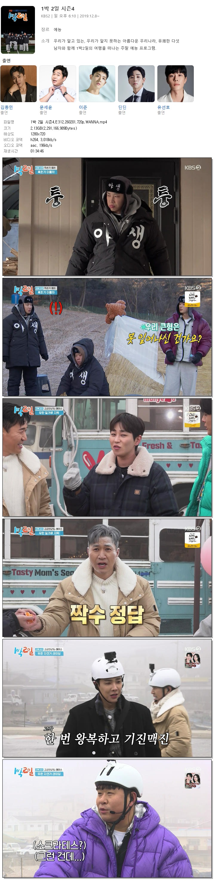[KBS2] 1박 2일 시즌4.E312.260201.720p.WANNA[이준, 문세윤]