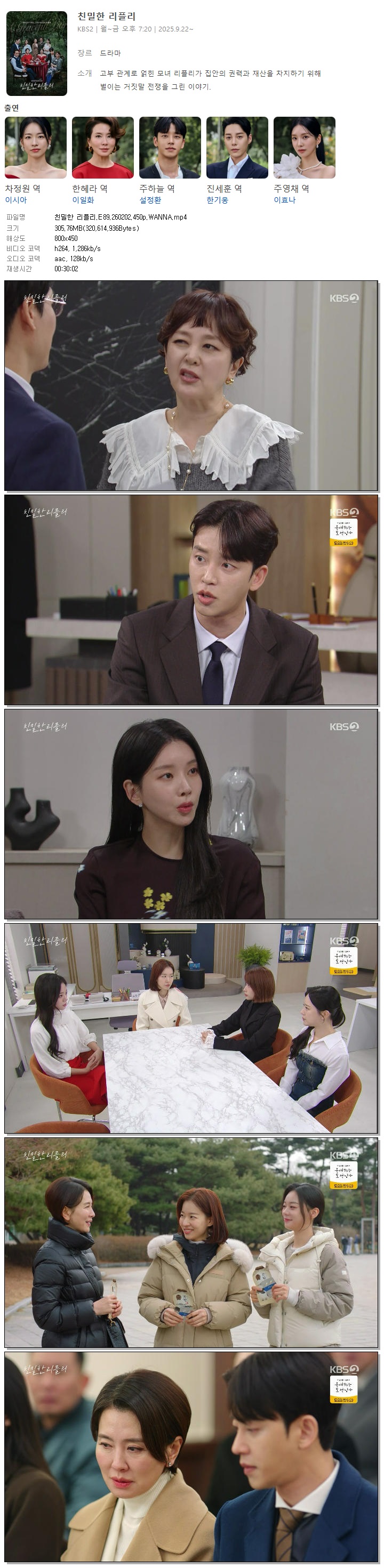 [KBS2] 친밀한 리플리.E89.260202.450p.WANNA[이시아, 이일화]