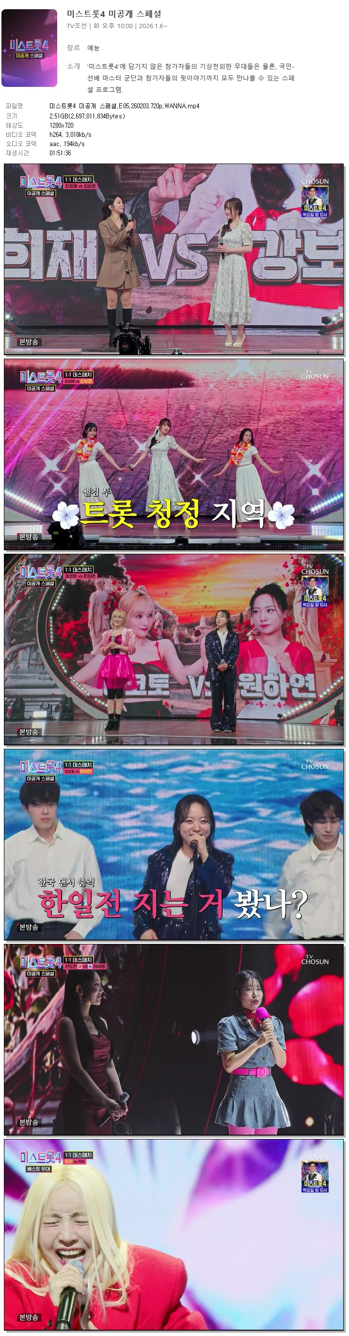 [TV조선] 미스트롯4 미공개 스페셜.E05.260203.720p.WANNA[장윤정, 장민호].mp4