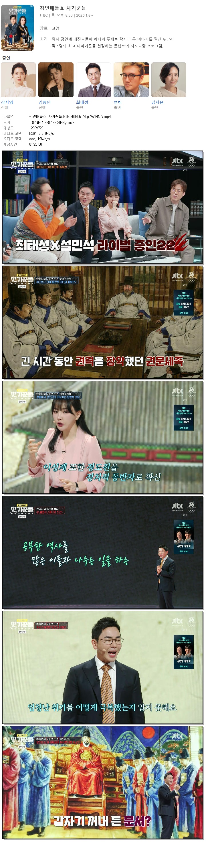 [JTBC] 강연배틀쇼 사기꾼들.E05.260205.720p.WANNA[설민석, 이다지].mp4