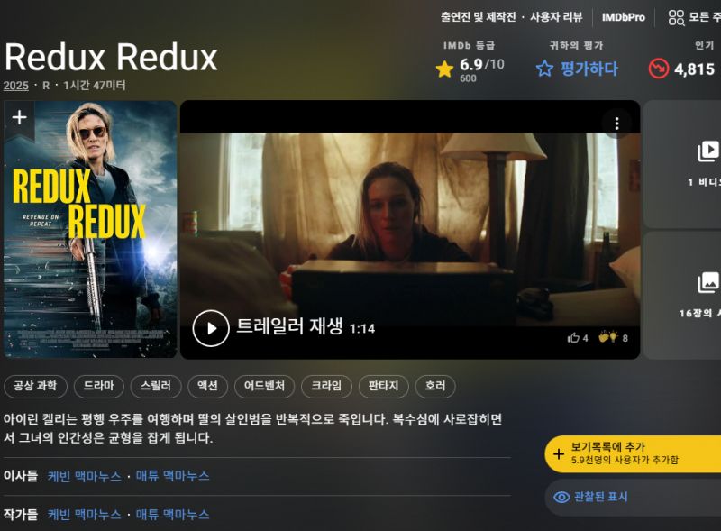 O2월. 공상과학스릴러 딸의복수 로튼98 (( 리덕스 )) 1080P 완벽자막