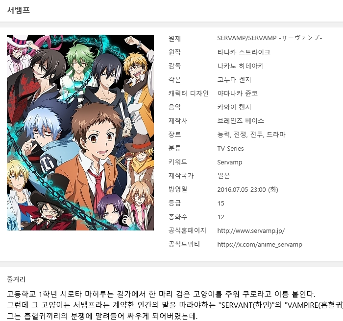 서뱀프 [Servamp] 01~12(완) [!SP . 극장판 포함!]