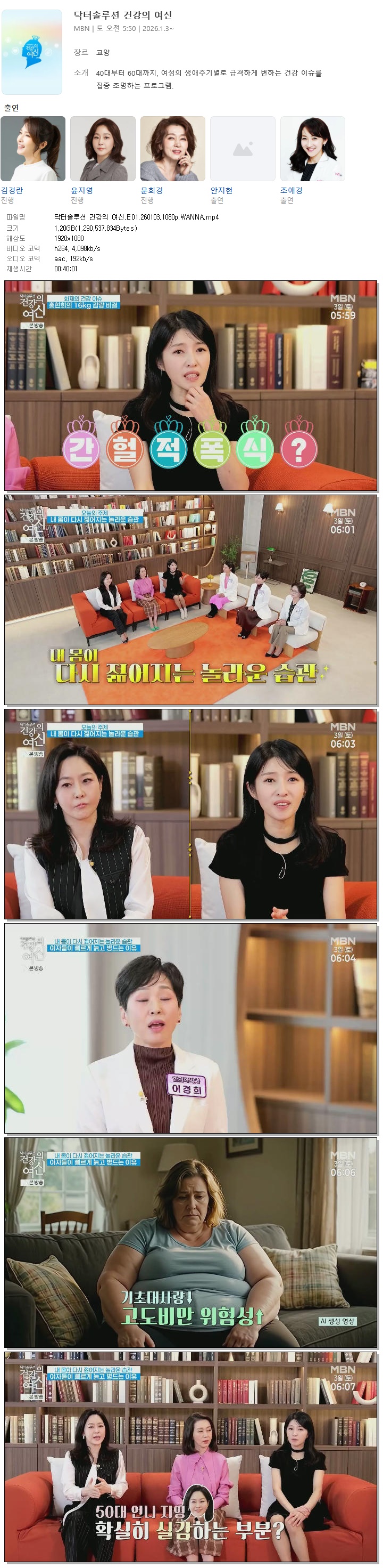 [MBN] 닥터솔루션 건강의 여신.E01.260103.1080p.WANNA[김경란, 윤지영].mp4