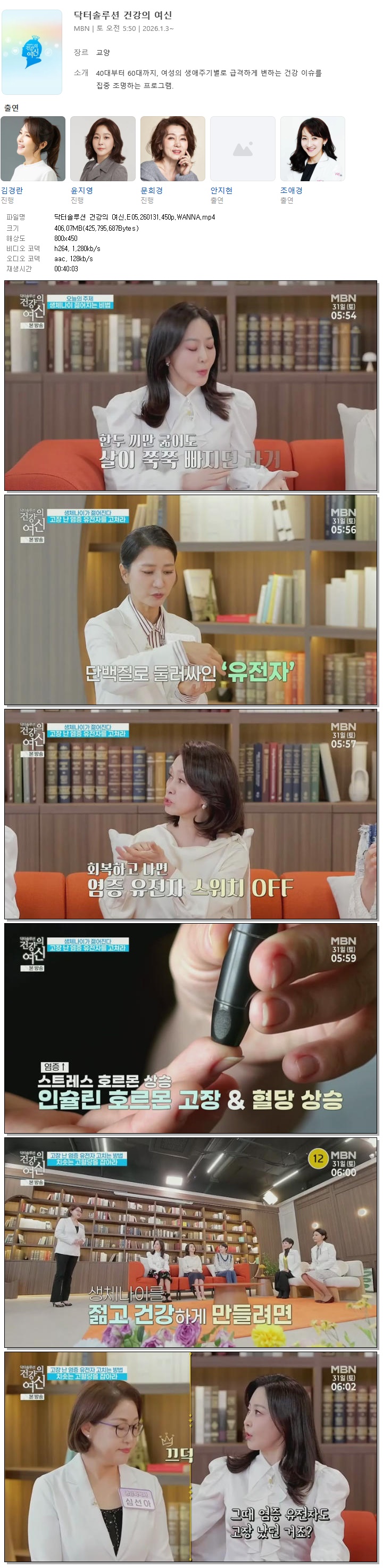 [MBN] 닥터솔루션 건강의 여신.E05.260131.450p.WANNA[김경란, 윤지영]