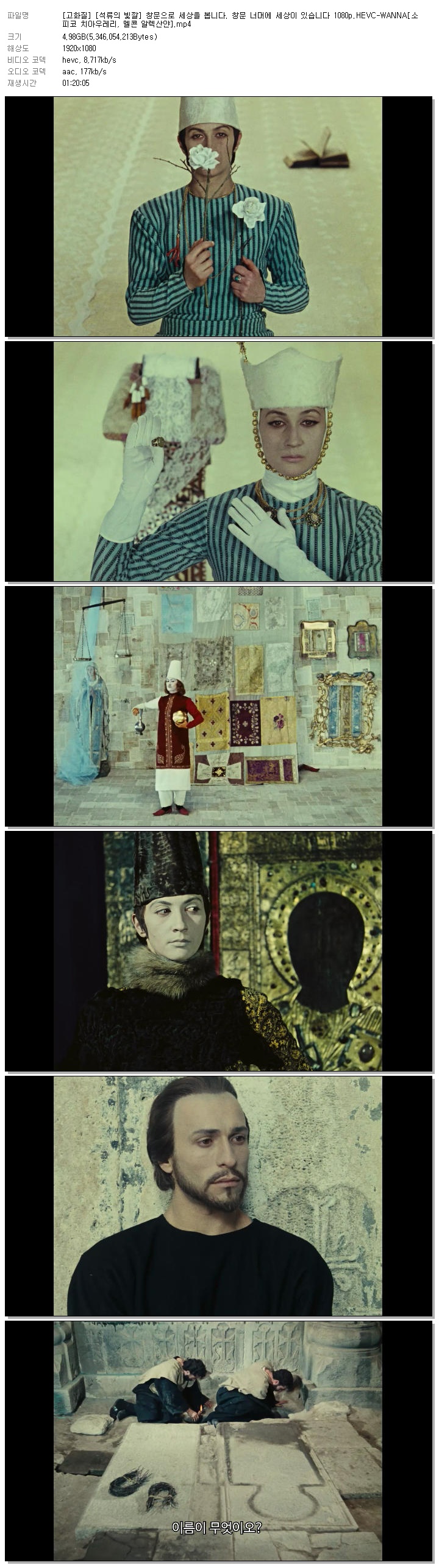 [고화질] [석류의 빛깔] 창문으로 세상을 봅니다. 창문 너머에 세상이 있습니다 1080p.HEVC-WANNA[소피코 치아우레리, 멜콘 알렉산얀]