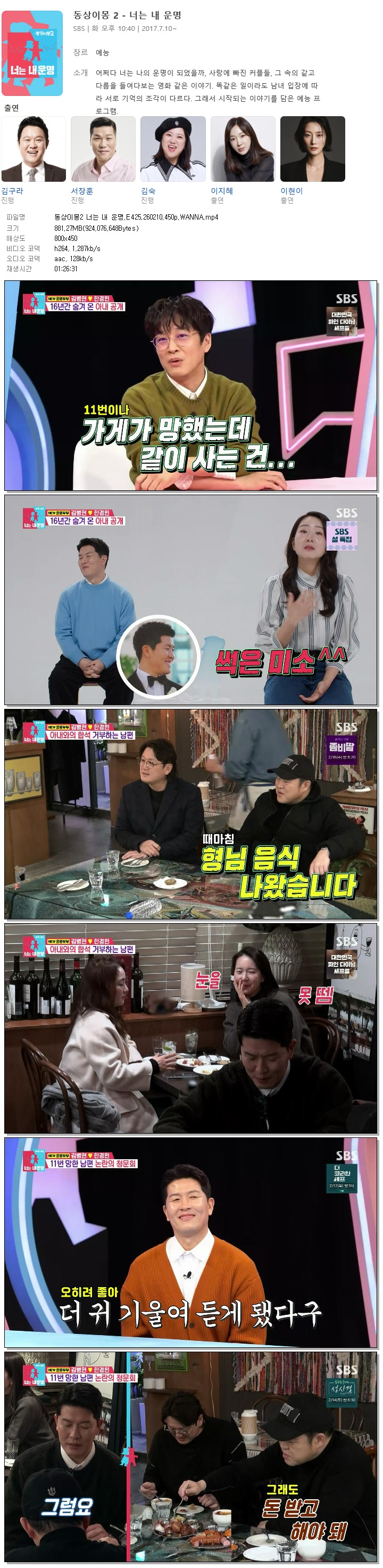 [SBS] 동상이몽2 너는 내 운명.E425.260210.450p.WANNA[김병현]