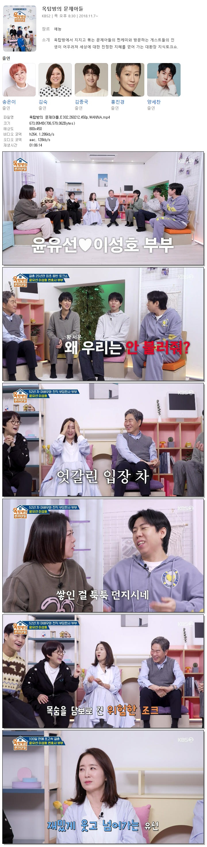 [KBS2] 옥탑방의 문제아들.E302.260212.450p.WANNA[윤유선, 이성호]