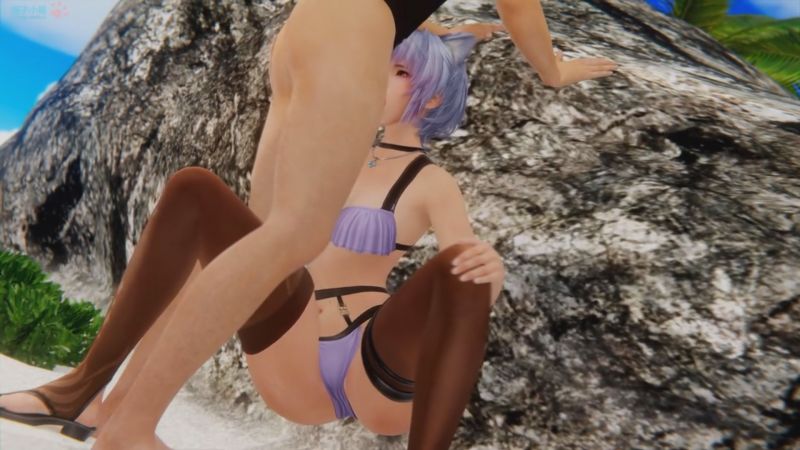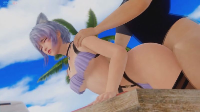 [3D] - 비키니 입은 고양이녀와 해변에서 즐기는 합체 현장
