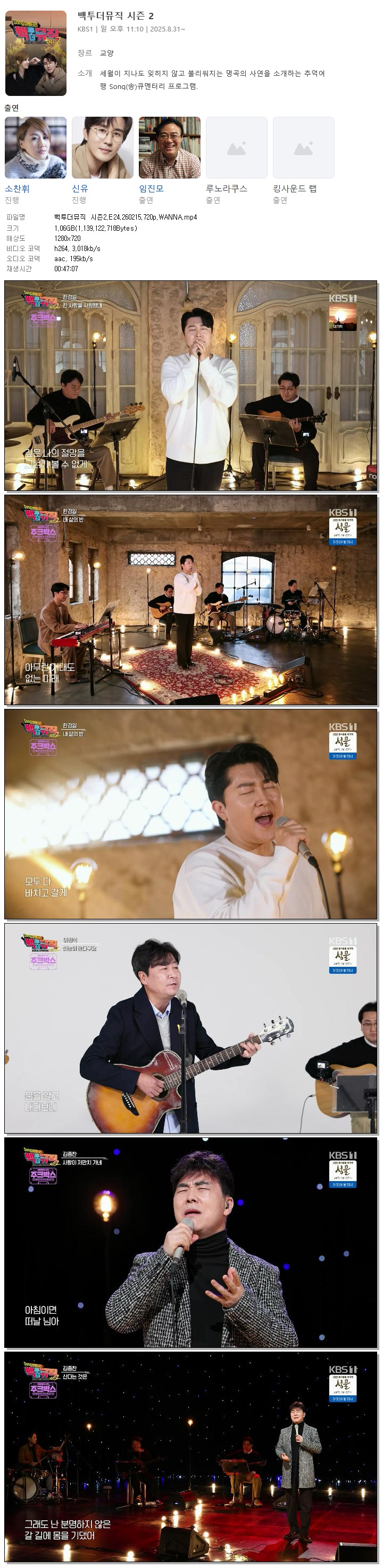 [KBS1] 백투더뮤직 시즌2.E24.260215.720p.WANNA[소찬휘, 신유]