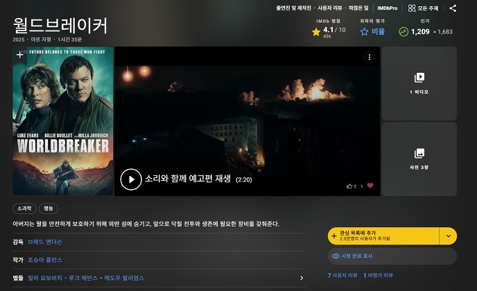 [최신] 액션 - 밀라요보비치-지구종말 ( 월뜨브레Qi커 ) 한글자체자막