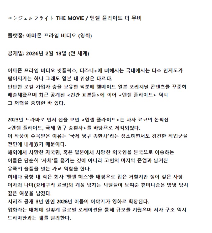 [엔젤플라이트 더 무비] 해외에서 사망한 자국민 국제 영구 송환사 자체자막