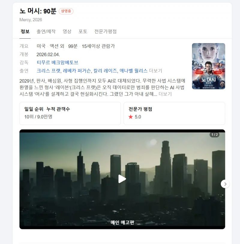 [2월] 크리스프랫 레베카퍼거선 액션떠따 (( 노 머 시 90 분 )) 1O8Op 공식자막