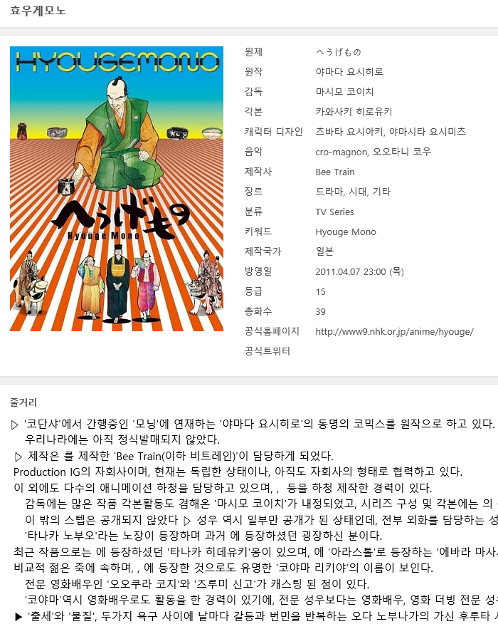 [인생] 효우게모노 01-39완결 -시대 드라마-