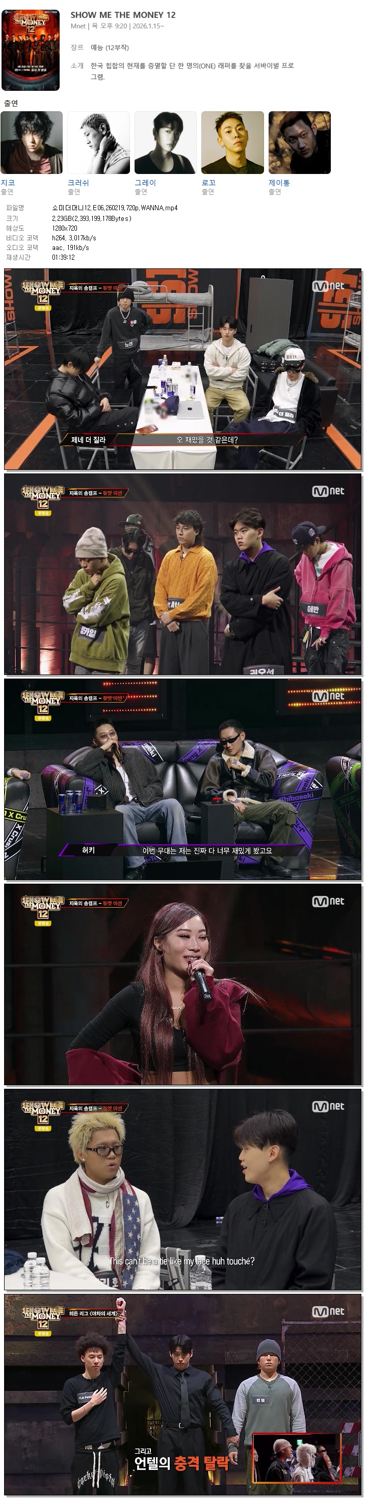 [M.net] 쇼미더머니12.E06.260219.720p.WANNA[크러쉬, 지코].mp4