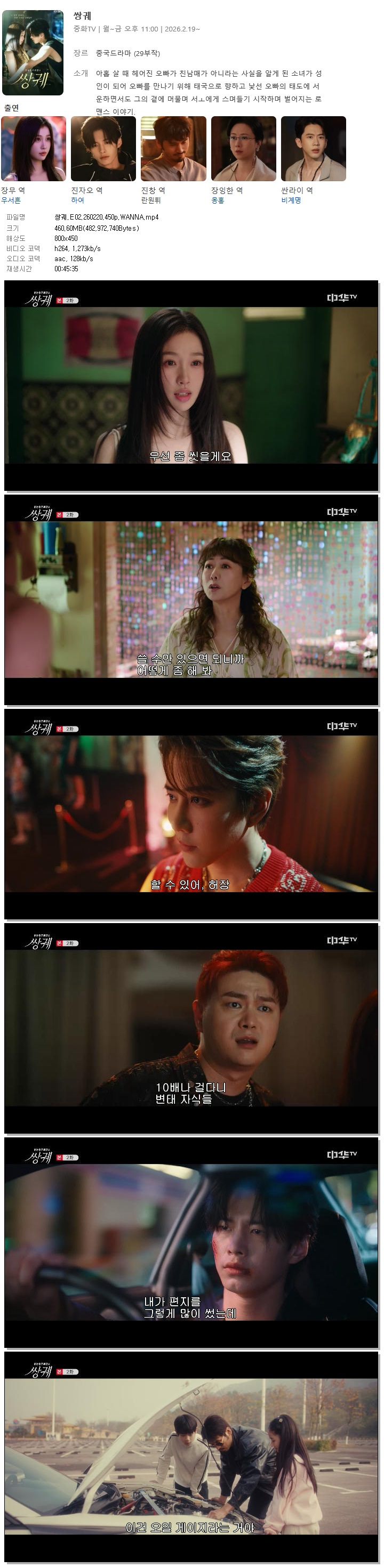 [중화TV] 쌍궤.E02.260220.450p.WANNA[우서흔, 하여]