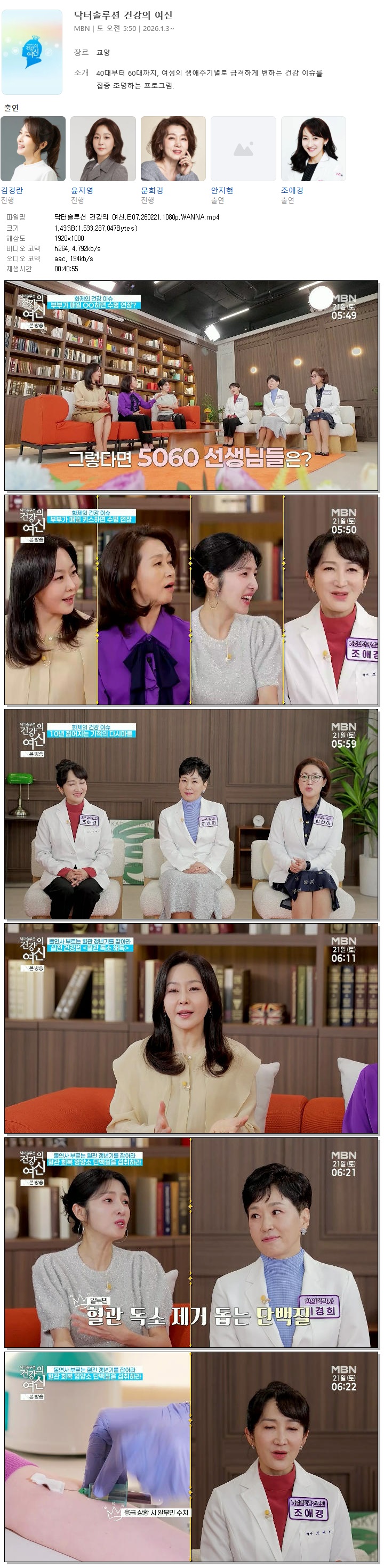 [MBN] 닥터솔루션 건강의 여신.E07.260221.1080p.WANNA[김경란, 윤지영].mp4