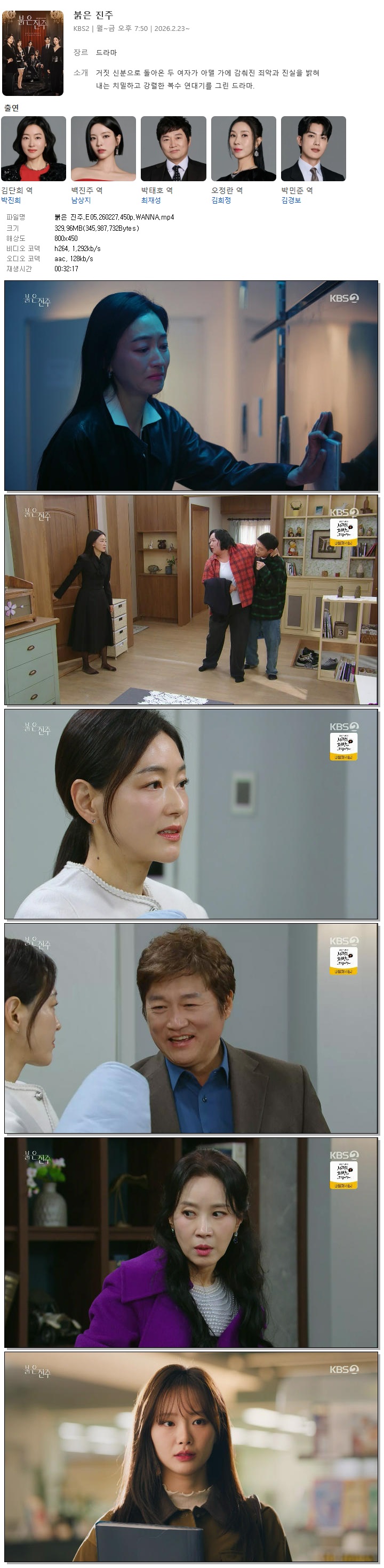 [KBS2] 붉은 진주.E05.260227.450p.WANNA[박진희, 남상지].mp4