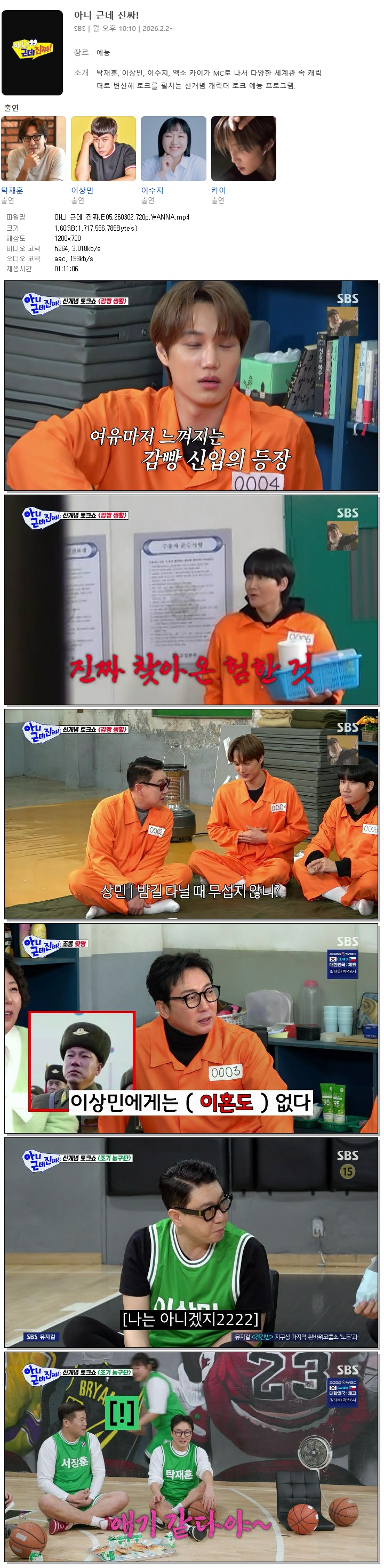 [SBS] 아니 근데 진짜.E05.260302.720p.WANNA[서장훈, 이용진].mp4
