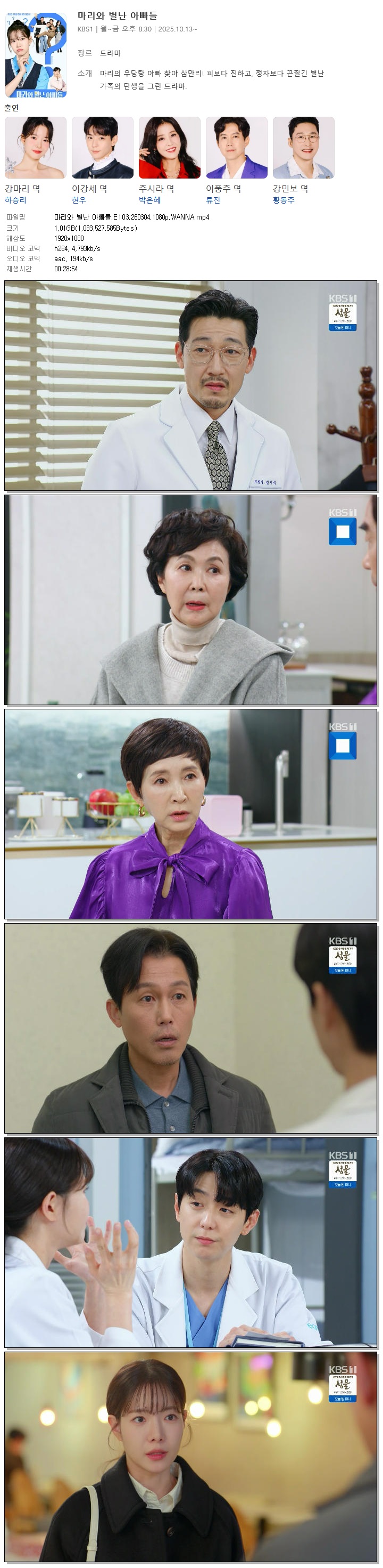 [KBS1] 마리와 별난 아빠들.E103.260304.1080p.WANNA[하승리, 현우]