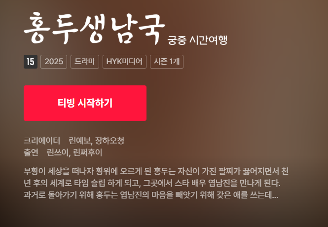 [중드완결]홍두생남국 궁중 시간여행.S01E01~E06완.TVING.WEB-DL.1080p.H.264.AAC2.0