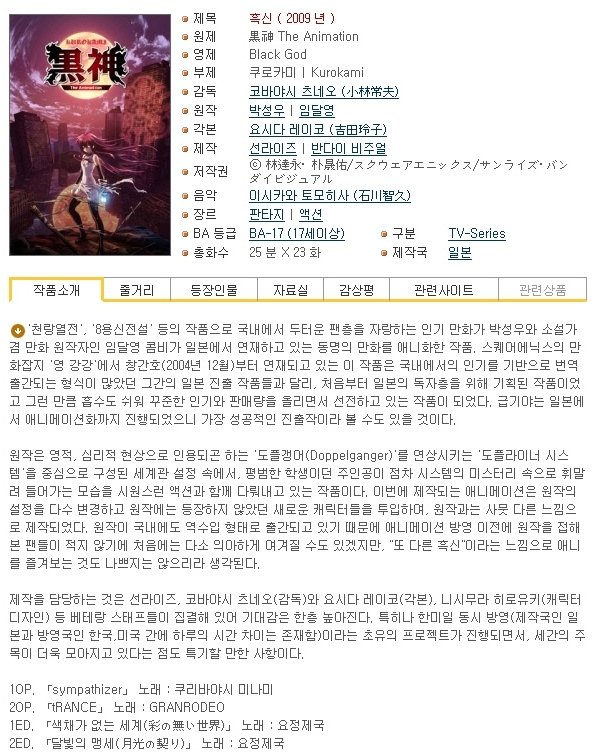 [애니] 흑신 [우리말 더빙 - OVA 자막] 01-23완결 -모험 판타지 액션-