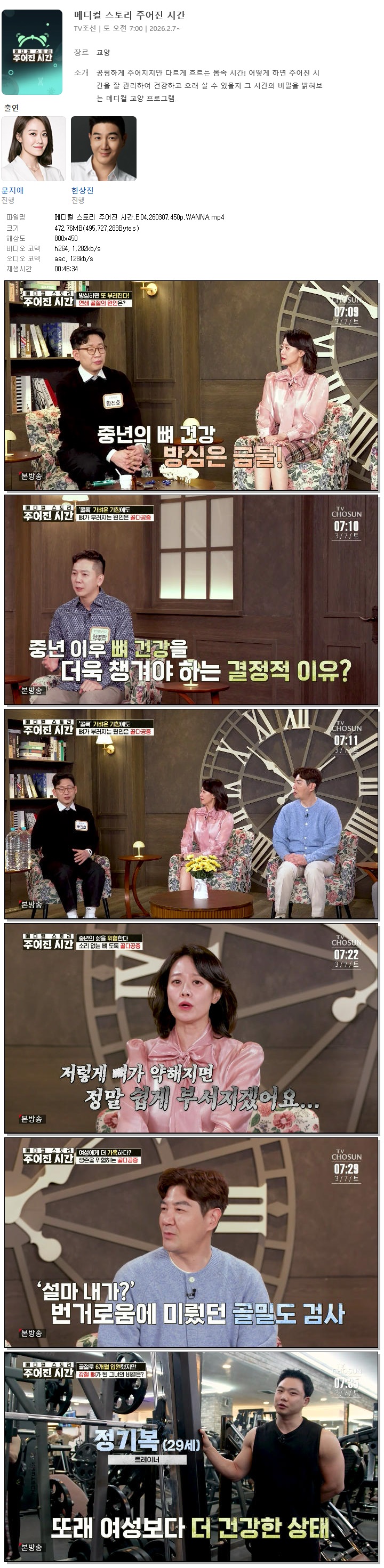 [TV조선] 메디컬 스토리 주어진 시간.E04.260307.450p.WANNA[문지애, 한상진].mp4
