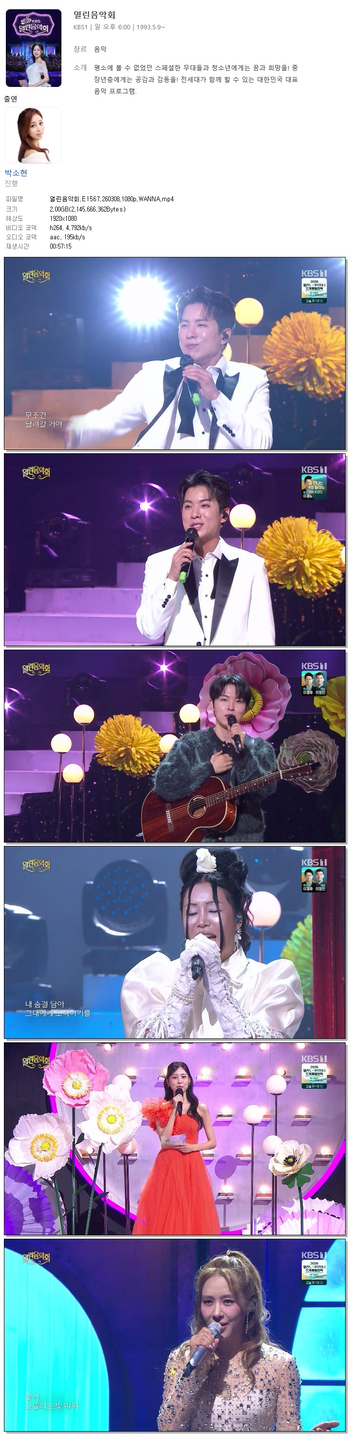 [KBS1] 열린음악회.E1567.260308.1080p.WANNA[옥주현, 코요태].mp4