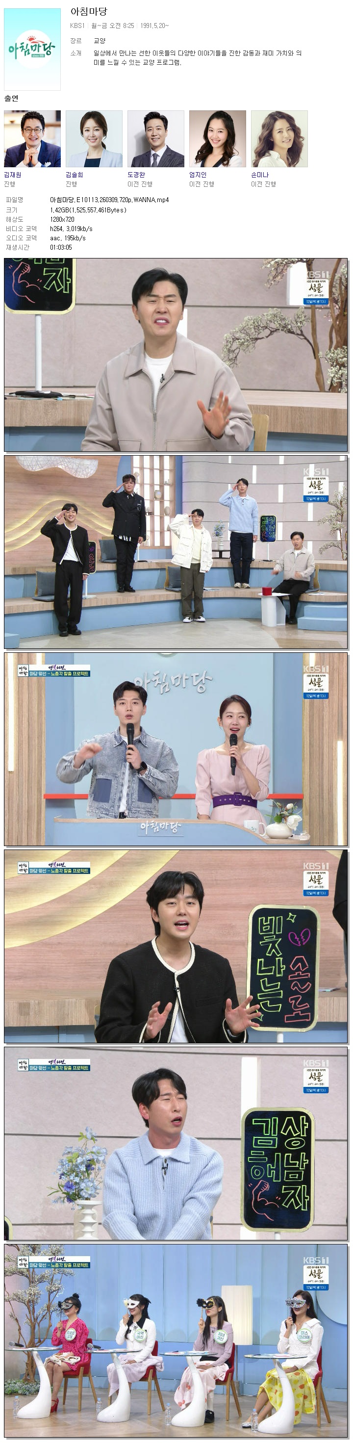 [KBS1] 아침마당.E10113.260309.720p.WANNA[엄지인, 박철규].mp4
