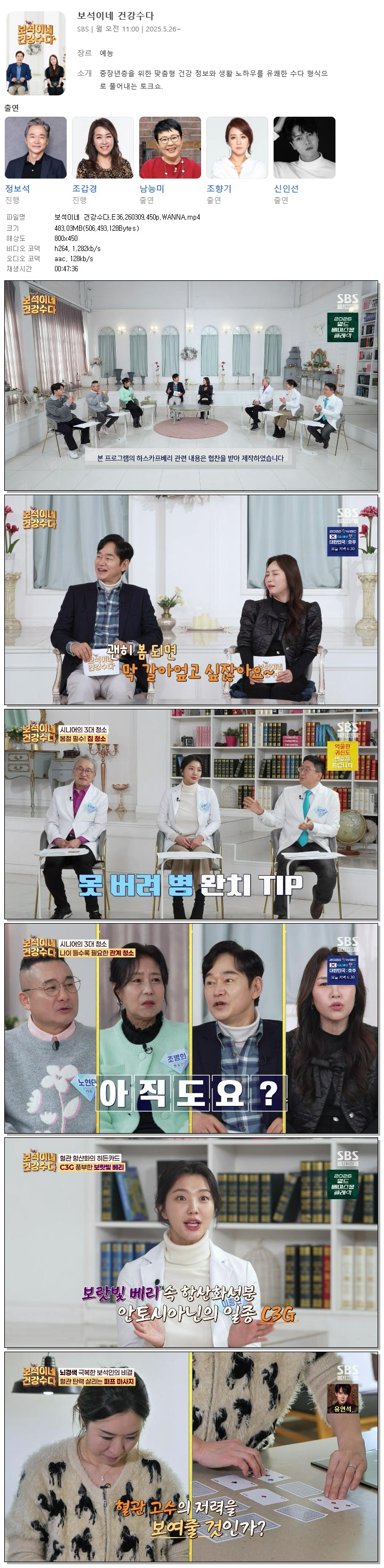 [SBS] 보석이네 건강수다.E36.260309.450p.WANNA[정보석, 조갑경]
