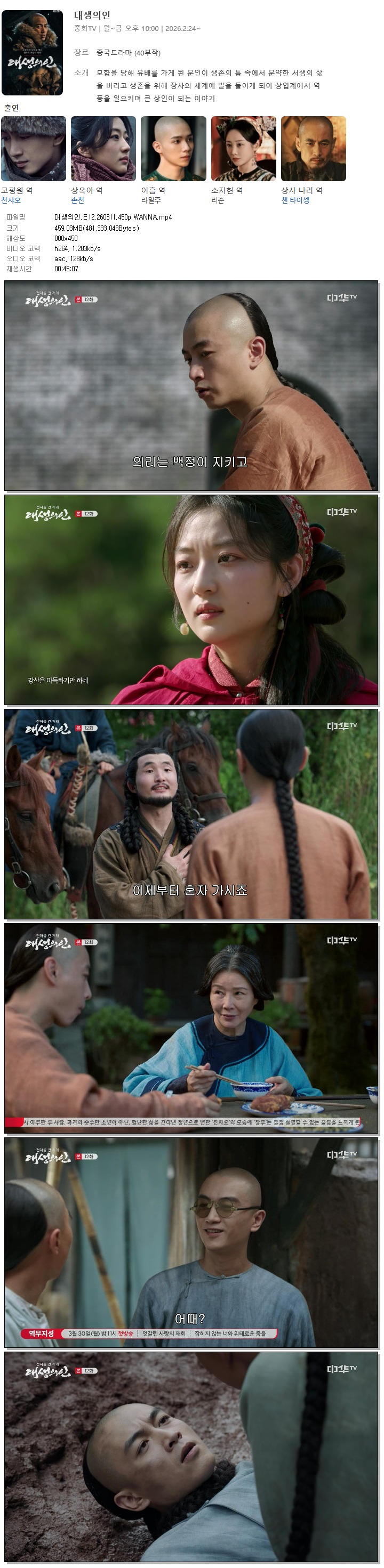 [중화TV] 대생의인.E12.260311.450p.WANNA[천샤오, 손천].mp4