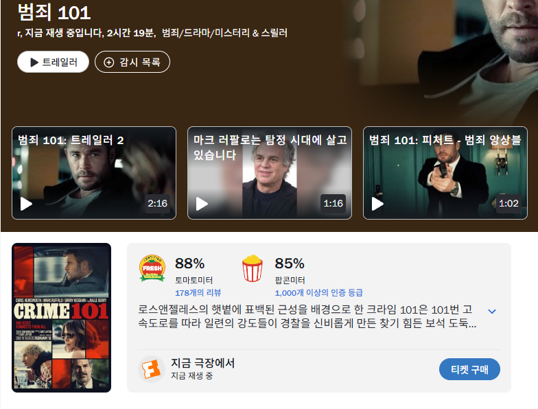 O3월. 크ㄹI스햄스워스X마크러팔러 범죄스릴러 (( 크ㄹr임 _ 101 )) 1080P 완벽자막