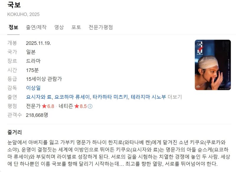 3월 일본 박스1위 최신대작 [ 국 뵤 ] 1080p 완벽자막