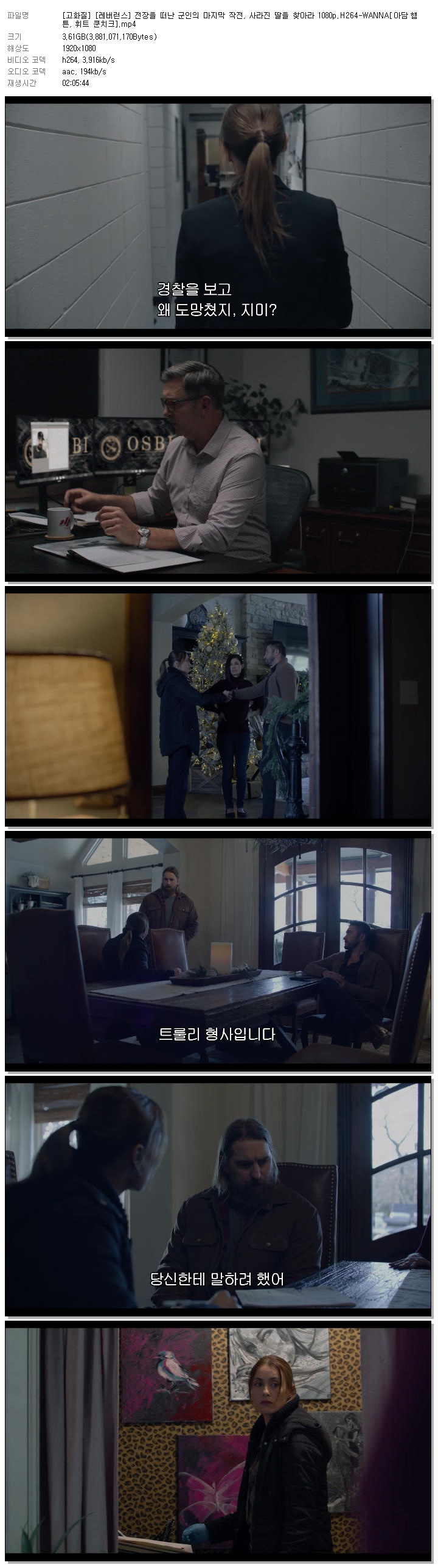 [고화질] [레버런스] 전장을 떠난 군인의 마지막 작전, 사라진 딸을 찾아라 1080p.H264-WANNA[아담 햄튼, 휘트 쿤치크].mp4