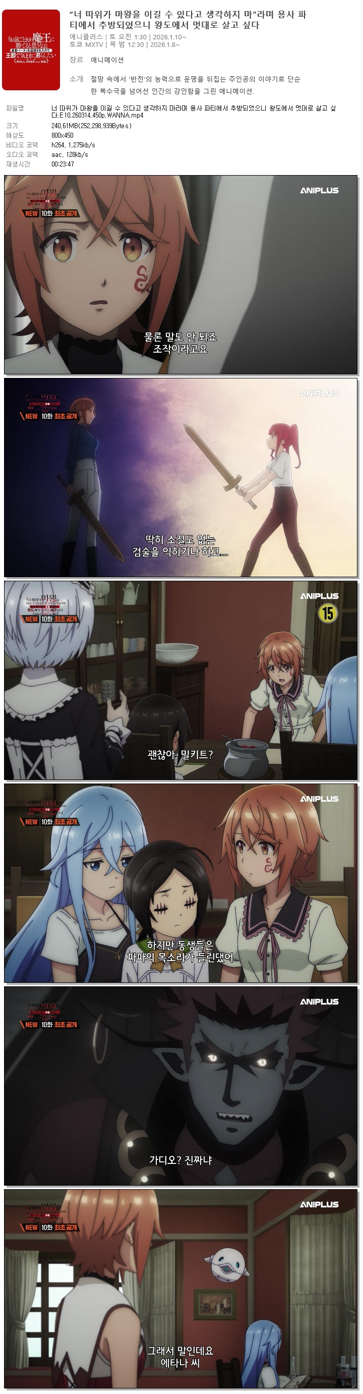 너 따위가 마왕을 이길 수 있다고 생각하지 마라며 용사 파티에서 추방되었으니 왕도에서 멋대로 살고 싶다.E10.260314.450p.WANNA