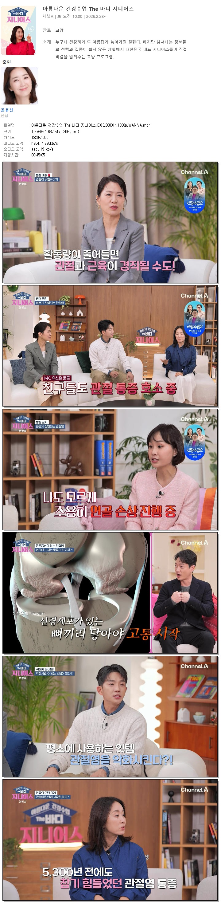 [채널A] 아름다운 건강수업 The 바디 지니어스.E03.260314.1080p.WANNA[윤유선]