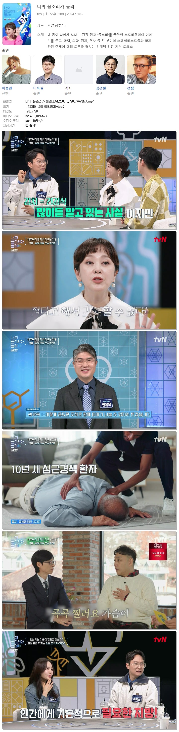[TVN] 너의 몸소리가 들려.E51.260315.720p.WANNA[이승연, 이독실]