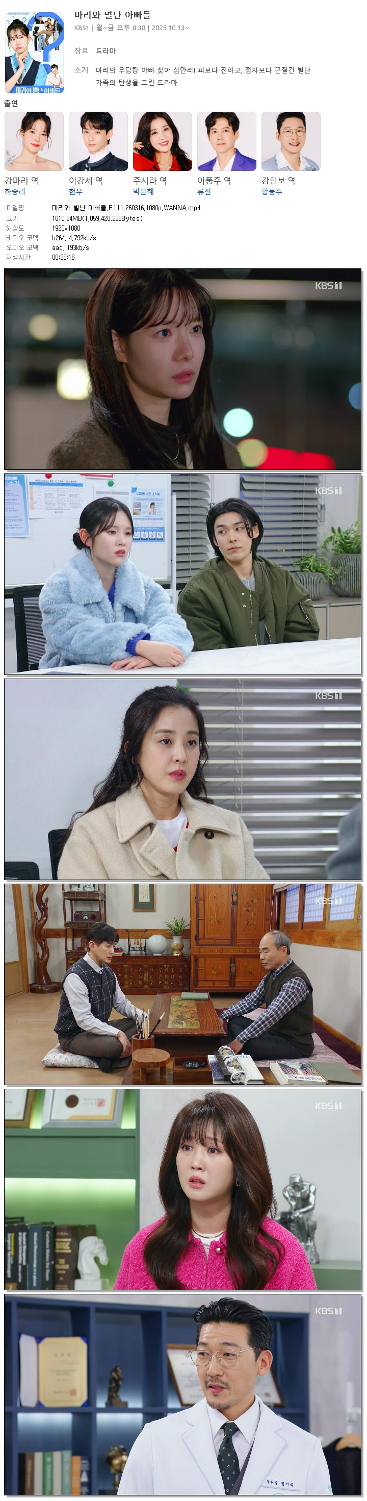 [KBS1] 마리와 별난 아빠들.E111.260316.1080p.WANNA[하승리, 현우].mp4
