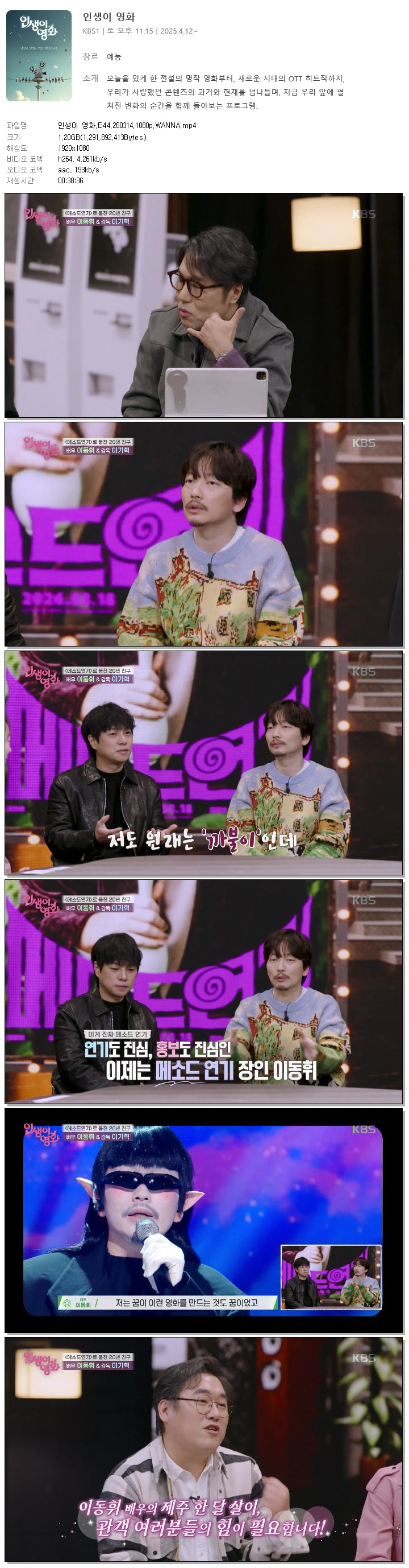 [KBS1] 인생이 영화.E44.260314.1080p.WANNA