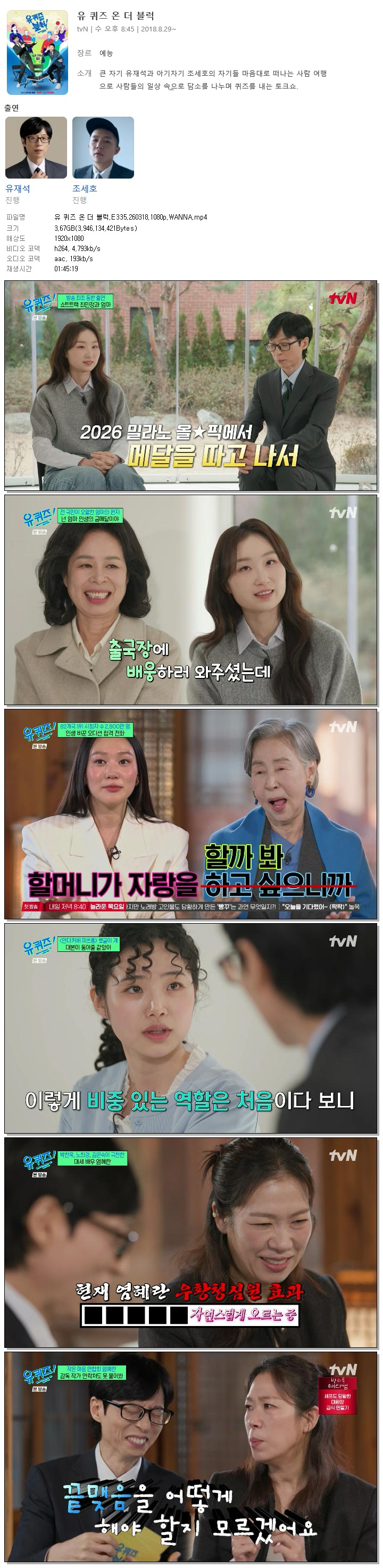 [TVN] 유 퀴즈 온 더 블럭.E335.260318.1080p.WANNA[최민정, 염혜란]