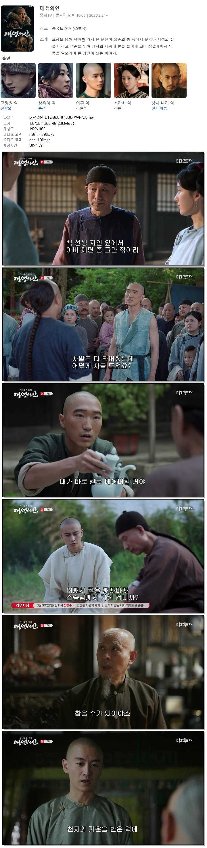 [중화TV] 대생의인.E17.260318.1080p.WANNA[천샤오, 손천]