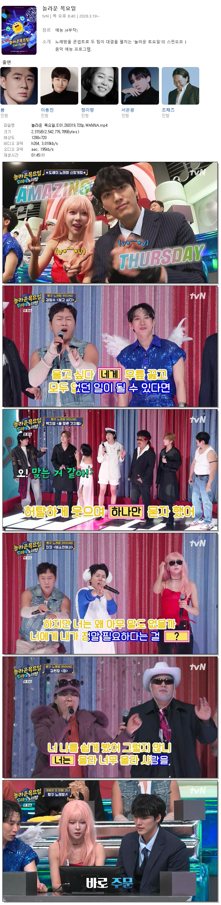 [TVN] 놀라운 목요일.E01.260319.720p.WANNA[붐, 이용진].mp4