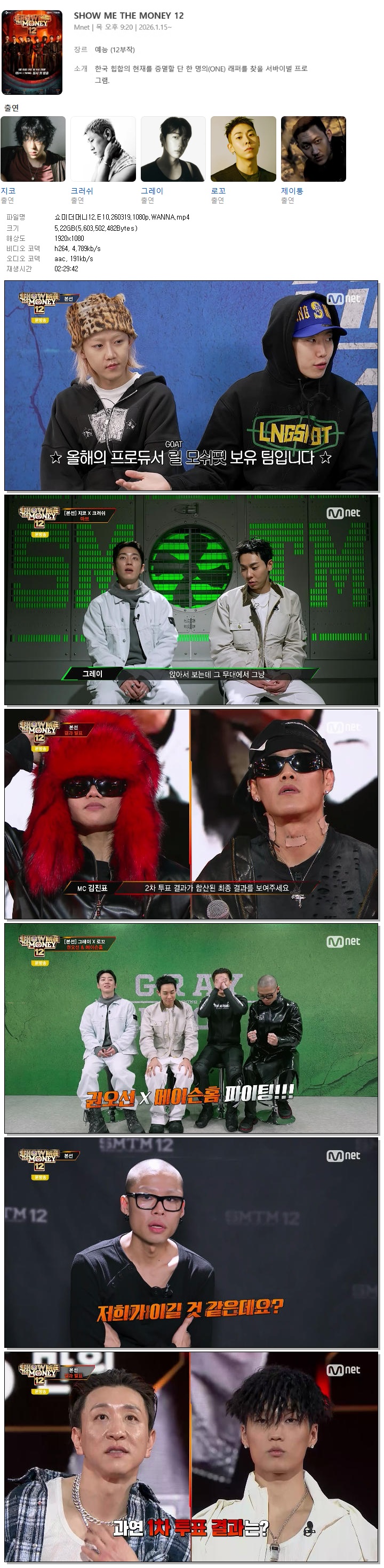 [M.net] 쇼미더머니12.E10.260319.1080p.WANNA[크러쉬, 그레이].mp4