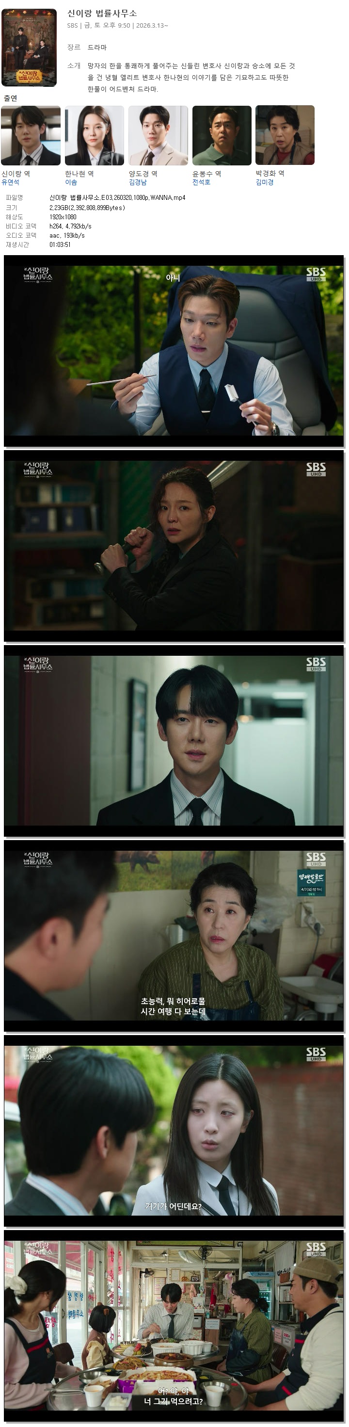 [SBS] 신이랑 법률사무소.E03.260320.1080p.WANNA[유연석, 이솜].mp4